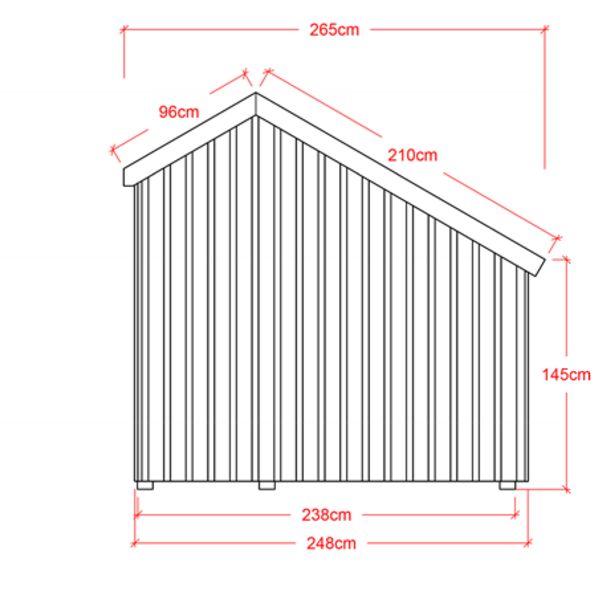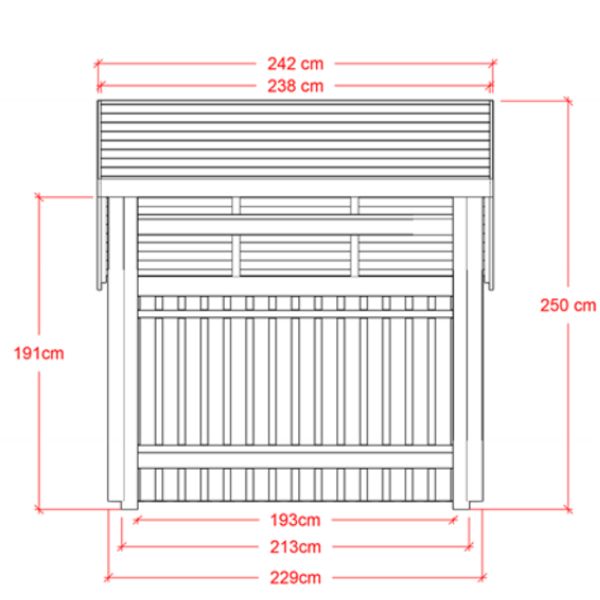 - Utvändiga mått: BxLxH 229x248x145/202/250 cm
