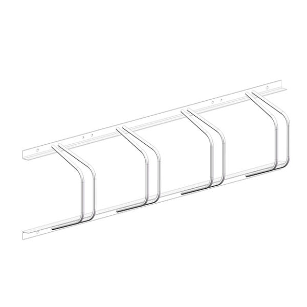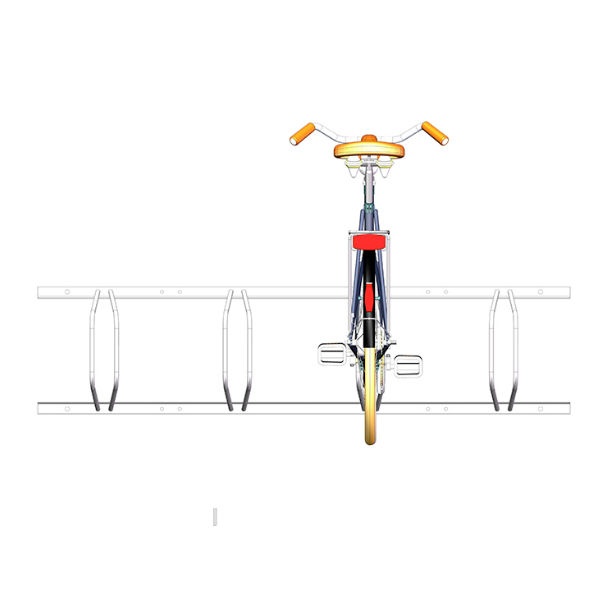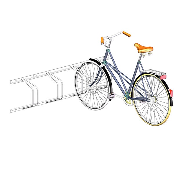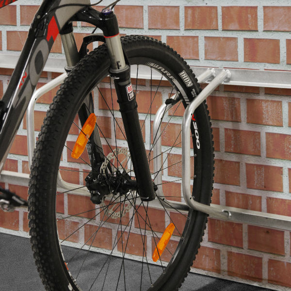 Cykelställ Wall finns med både 4 och 5 platser. Cykelstället monteras på väggen och cyklarna parkeras rakt in.