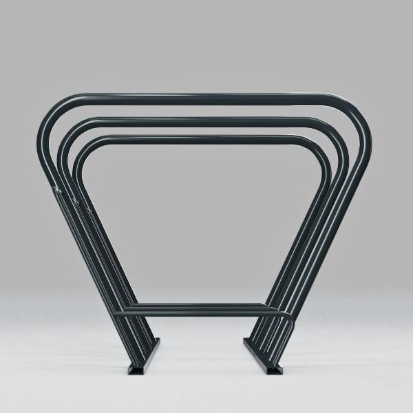 De kraftiga rundrörsbågarna ger en tydlig avgränsning mellan platserna samtidigt som det erbjuder en säker fastlåsning av cykelram och hjul.