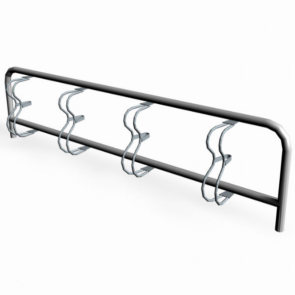 Cykelstället Urban med enkelsidig parkering har med sin neutrala stil lätt för att passa in i offentliga utemiljöer. Ett ramfäste går att köpa till för att kunna låsa fast även ramen i cykelstället.