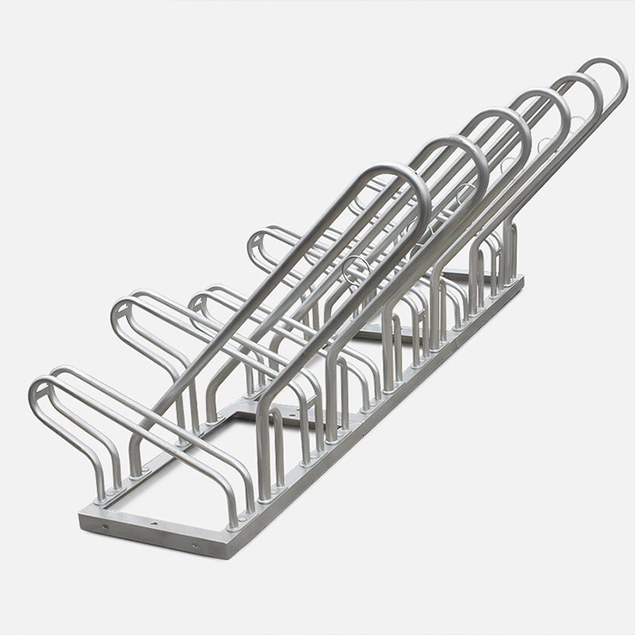Cykelstället Wave med ramlås är ett säkert och stabilt alternativ. Det är modulbaserat och gjort i varmförzinkat stål som klarar utomhusbruk. Stället har ett rakt hjulfäste och är gjort för att parkera cyklar enkelsidigt.
