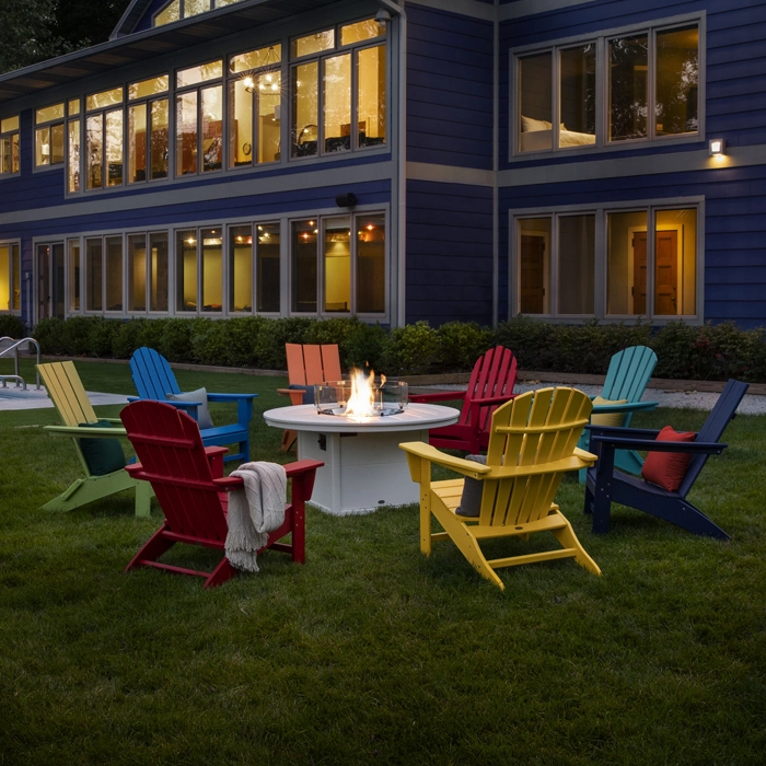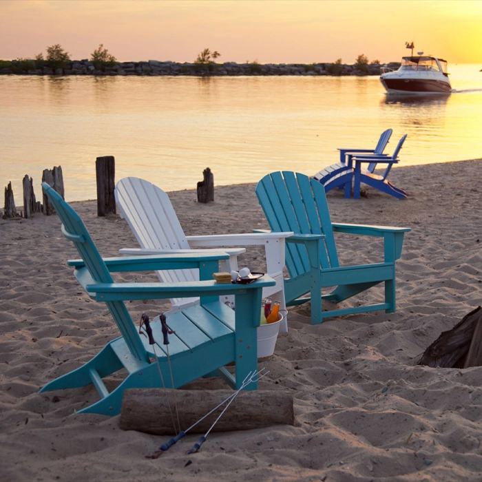 Stilren däckstol som finns i flera färgglada utförande, tillverkad i återvunnen material vilket gör att dessa kan stå ute året om och tillför minimalt med underhållsarbete jämfört med en stol i trä.