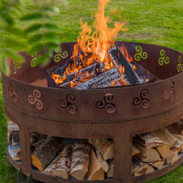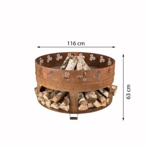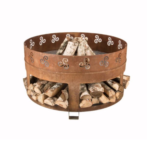 Eldstad Antigo är en av våra senaste eldningsfat och har en rund utformning med förvaring för ved stående på 3 st stadiga ben.