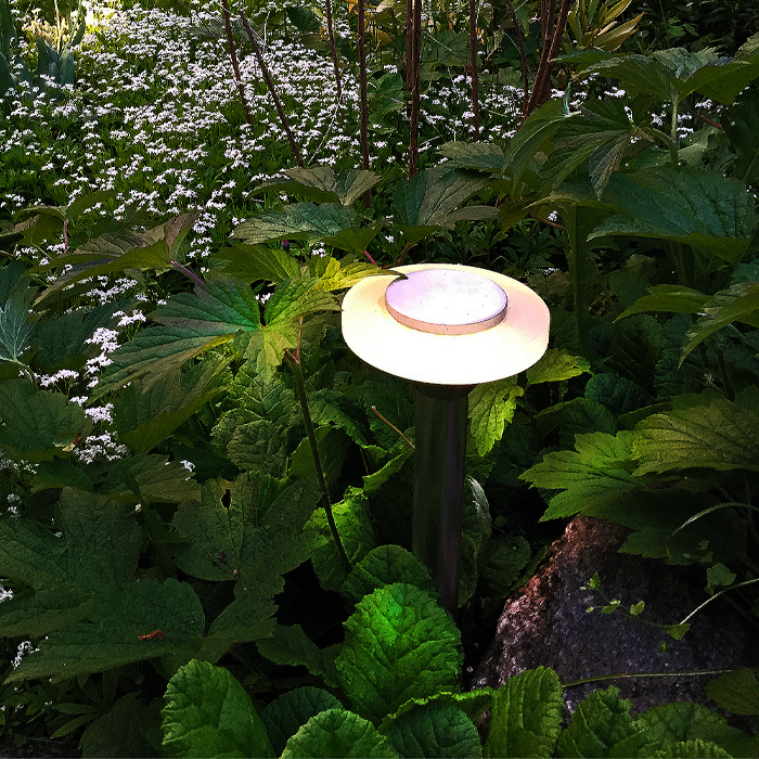 Snygg liten pollare som gör sig bra om du vill skapa en upplyst gång i trädgården, passar även perfekt i rabatter. Den är effektfull när den sticker upp ur växtligheten som en mindre installation. Det blir som ett litet svävande tefat i grönskan.