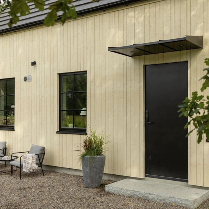Våra basic-tak har en förenklad struktur och något mindre dimensioner än våra standardtak. Den är perfekt för dig som kanske inte har så mycket utrymme ovanför dörren, eller som helt enkelt letar efter ett entrétak med en mer minimalistisk design.
