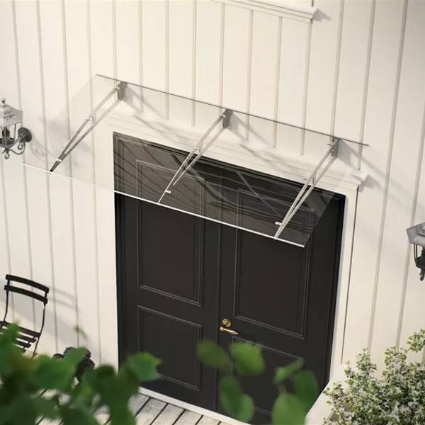 Ett entrétak är till för att skydda din ytterdörr mot regn och för att förhindra att vatten samlas intill dörren. Entrétaket har konsoler av stål som pulverlackerats och ramen av spraymålad aluminium försedd med skiva av klar polykarbonat som tål en snövikt på 120kg. Detta entrétak fungerar utmärkt för att skydda entrén eller värmepumpen mot regn och rusk, samtidigt som du ger fasaden ett visuellt lyft.