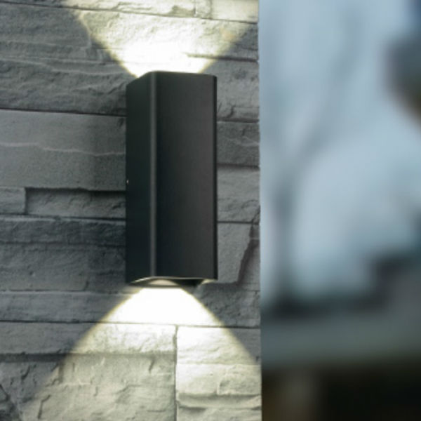 Fasadbelysning Andy är tillverkad i pulverlackerad aluminium och sprider ljuset både upp och nedåt.