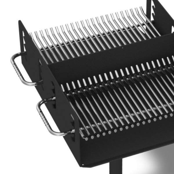 FixGrill är tillverkad av 5 mm tjock järnplåt samt ett 12 mm tjockt rostfritt grillgaller som kan höjas och sänkas men inte plockas eller bändas bort.