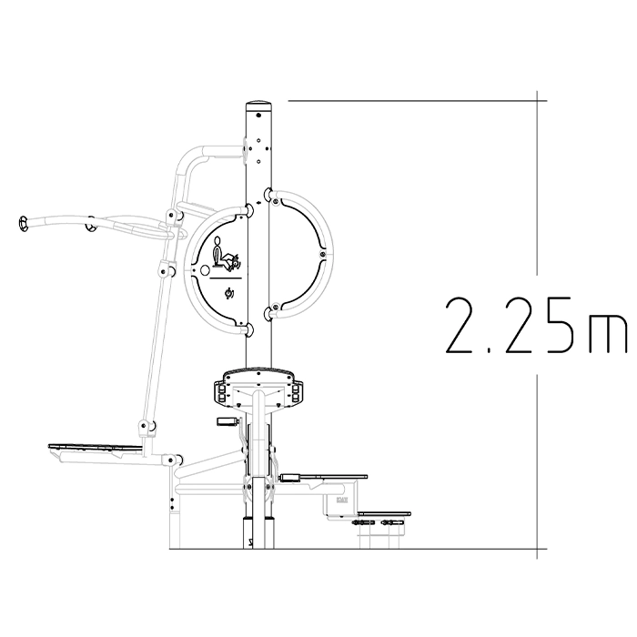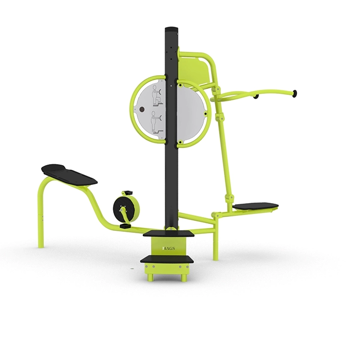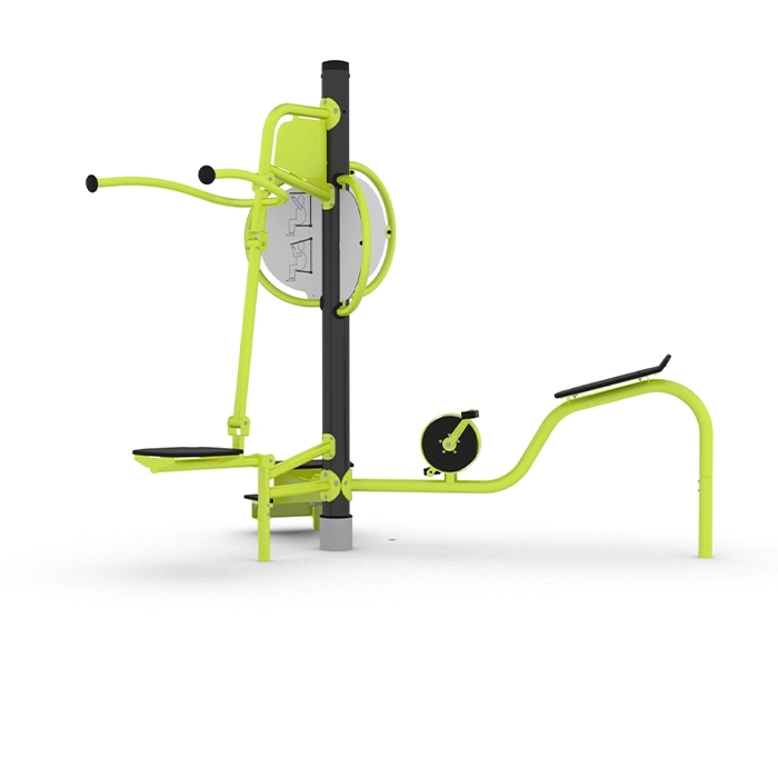 Flexo är en multifunktionell träningsstation med flera övningsmöjligheter. Den har step-up, cykel och pulldown som använder kroppsvikt för träning. Den tar lite plats, kräver minimalt underhåll och passar utmärkt för utomhusgym.