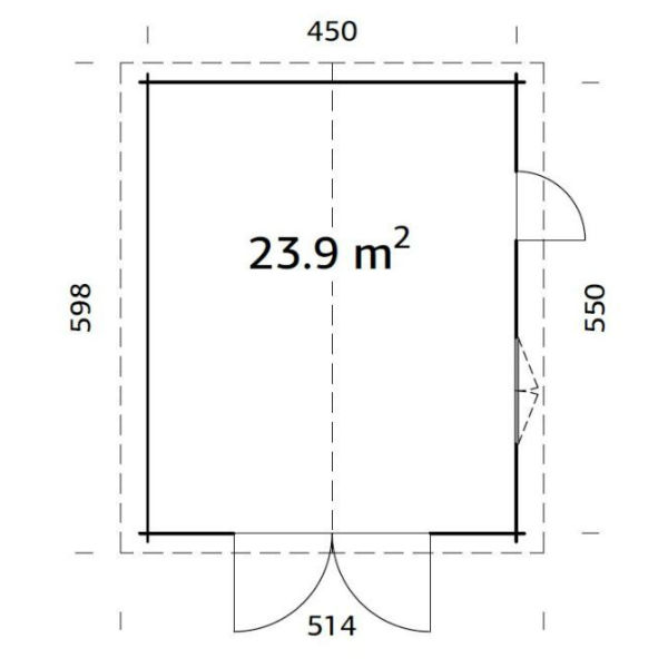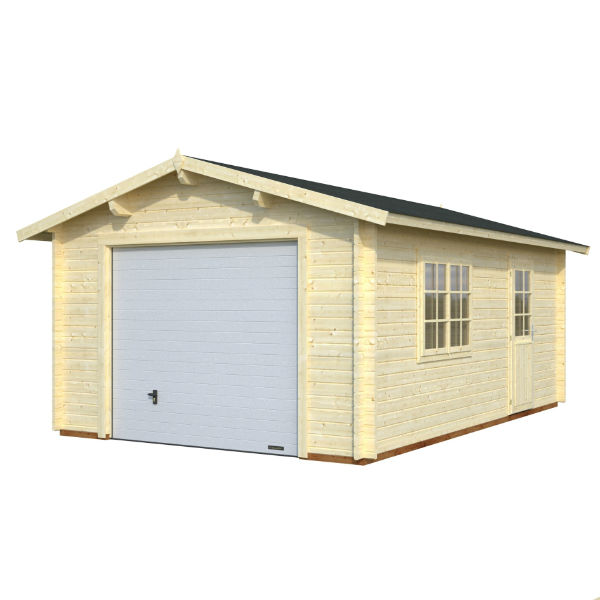 Garaget som kommer i en byggsats är enkelt att montera för den händiga. Grunden består av knuttimrat virke med en tjocklek på 44mm bestående av nordisk gran. Garaget är utrustad med en fönsterdörr samt ett fristående öppningsbart fönster, både är beklädda med spröjs.