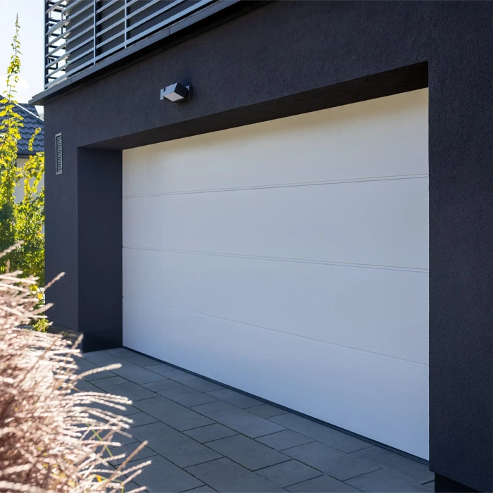 Med sin släta yta och klassiska vita finish (RAL 9016) ger garageporten din bostad ett ljust och exklusivt uttryck som passar de flesta fasader. Panelerna är både galvaniserade och pulverlackerade, vilket ger en mycket robust och underhållsvänlig yta. För din säkerhet är porten dessutom utrustad med ett integrerat klämskydd mellan panelerna.
