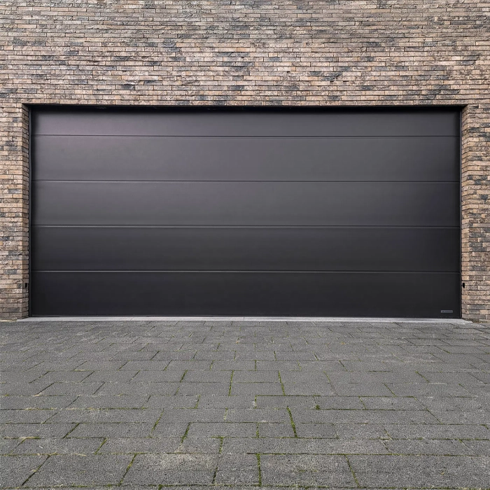 Med sin släta, pulverlackerade yta i den djupa svarta färgen RAL 9005 ger porten din bostad en sofistikerad och lyxig karaktär. Panelen är tillverkad av galvaniserat stål, vilket ger ett exceptionellt skydd mot rost och en yta som är mycket lätt att hålla ren. För högsta användarsäkerhet är porten dessutom utrustad med ett inbyggt klämskydd mellan panelerna.