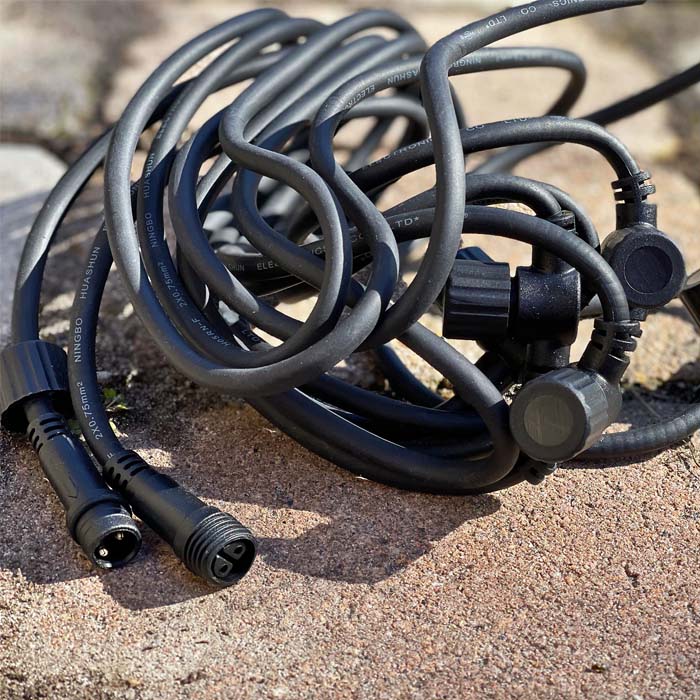 Grenkabeln gör så att flexibiliteten blir större då du inte behöver veta exakt var lamporna ska sitta från början. Den är också perfekt om redan du har lampor men vill kunna koppla på exempelvis ljusslingor vid jul eller fest. Ska du bygga trädäck eller staket med flera lampor i rad är denna typ av kabel att rekommendera. De uttag du inte använder pluggar du bara igen med medföljande gummipackning och skruvhatt.
