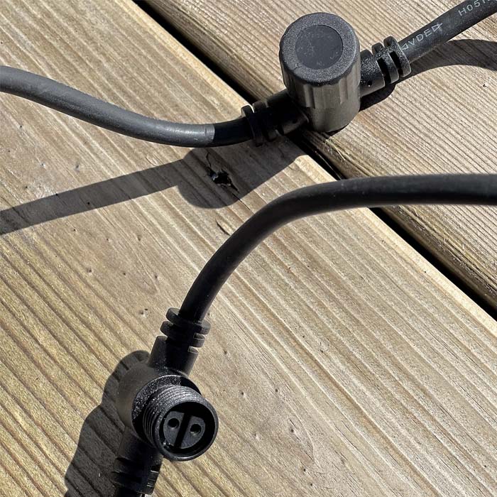Flexibiliteten blir stor då du inte behöver veta exakt var lamporna ska sitta från början. Den är också perfekt om du redan har lampor men vill kunna koppla på ljusslingor vid exempelvis jul eller fest. Ska du bygga trädäck eller staket med flera lampor i rad är denna typ av kabel att rekommendera. De uttag du inte använder pluggar du bara igen med medföljande gummipackning och skruvhatt.