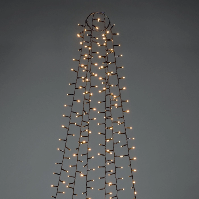 Lägg till extra magi till din julgran med denna konformade julgransslinga från Konstsmide, den eleganta klusterdesignen med 6 slingor och 6x100 LED-lampor ger ett varmt, amberfärgat sken som sprider julstämning. Slingan är enkel att montera genom att trä ringen över toppen av granen, och den svarta kabeln smälter snyggt in i omgivningen.