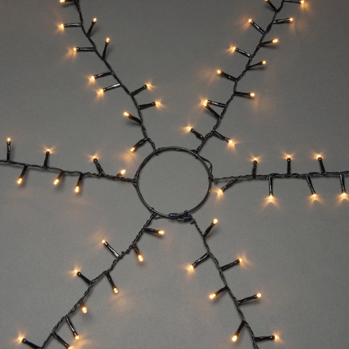 Inkluderad transformator med inbyggd timer (8 timmar) gör att du slipper tänka på att slå av och på belysningen. Med en höjd på 240 cm och en sladdlängd på 500 cm är denna slingas räckvidd perfekt för både små och stora granar. Den är dessutom IP44-klassad, vilket gör den lämplig för utomhusbruk under alla väderförhållanden.