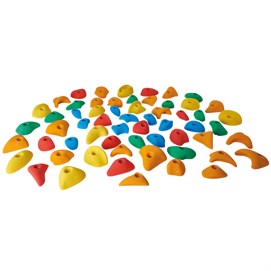 Ett set med 60 st färgglada klättergrepp i olika former och färger, vilket gör klättrandet roligare och utmanande. Klättergreppen har ett bra grepp och de olika storlekarna gör att greppen utgör en perfekt kombination för alla åldrar.
