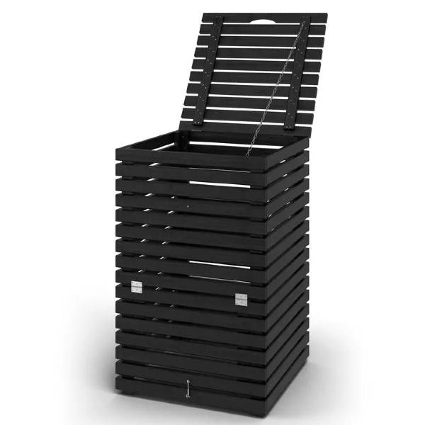 Kompost tillverkad av karaktäristiska ribbor i svartmålad gran. Komposten har en volym på 340 liter och är försedd med lock och rostfria gångjärn samt en praktisk lucka för att plocka ut avfall i botten. Givetvis är komposten tillverkad av FSC®-certifierat virke för ett ansvarsfullt skogsbruk och finns tre olika färger.