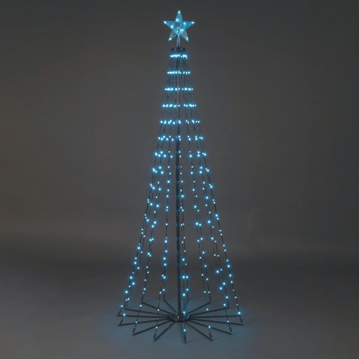 Ge din utemiljö en modern och färgstark touch med denna konformade metallstjärna, utrustad med 15 slingor med totalt 265 st RGB-färgade LED-lampor, skapar den ett stämningsfullt sken som förgyller vilken kväll som helst.