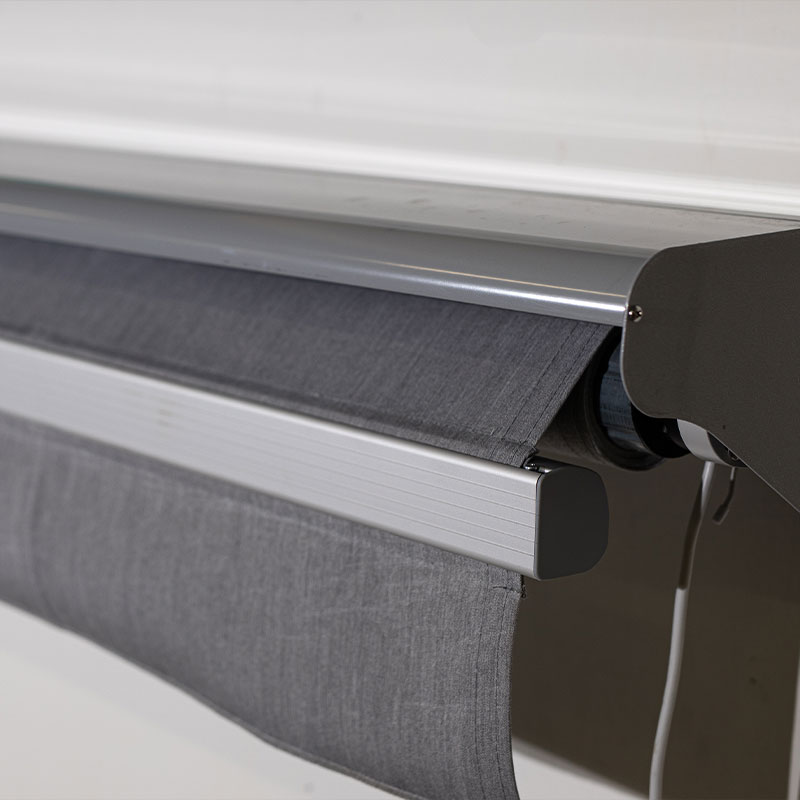 - Markisdukens bredd på färdig produkt är 13 cm smalare än totalbredden på markisen