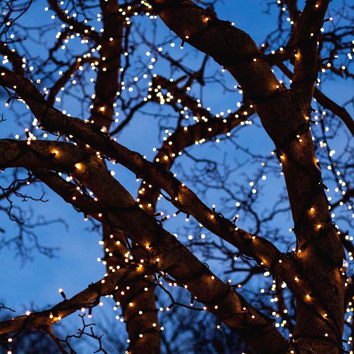 Enkel ljusslinga med 100 st LED-lampor i varmt och fint ljus, placeras smidigt runt trädstammar, balkongräcken, buskar, murar eller staket.