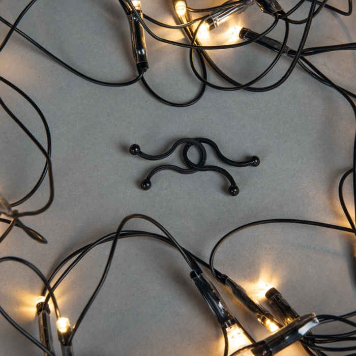 Den svarta kabeln och den höga IP44-klassningen säkerställer att nätet tål väder och vind, medan den medföljande transformatorn med inbyggd timer gör användningen både smidig och energisnål. Med timerfunktionen kan du enkelt ställa in att nätet lyser i 8 timmar och därefter automatiskt släcks. För extra flexibilitet ingår 20 clips för enkel montering samt en generös förlängningssladd på 10 meter, vilket gör det enkelt att placera nätet precis där du vill ha det.
