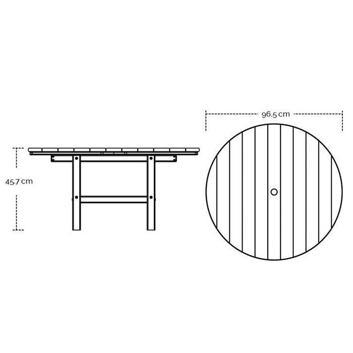 Snyggt loungebord i återvunnet material som finns i flera olika kulörer. Bordet har en diameter på 96,5 cm och är 45,7 cm högt.