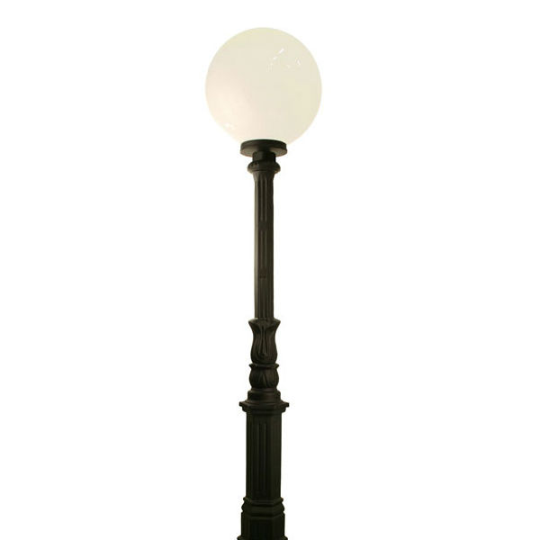 Ljuså Glob 400 är en Lyktstolpe i sekelskifte-stil som passar bra som utomhusbelysning vid gårdar, kyrkor, torp, stora villor, herrgårdar, slott och parker.