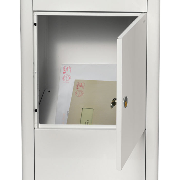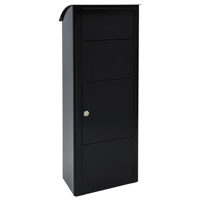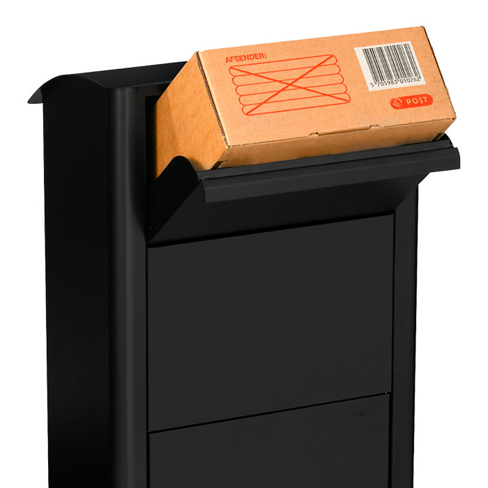 Med en lucka med säkerhetsinkast gör att man inte kan komma ner i lådan genom postinkastet, lådan klarar av att ta emot paket upp till 30x30x12 cm. Tillverkad i pålverlackerad stål för lång hållbarhet och bra rostskydd.