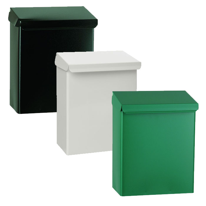 Enkel brevlåda med en storlek på 339x259x145 mm och en postkapacitet på 13 liter, finns svart, vitt och grönt utförande.