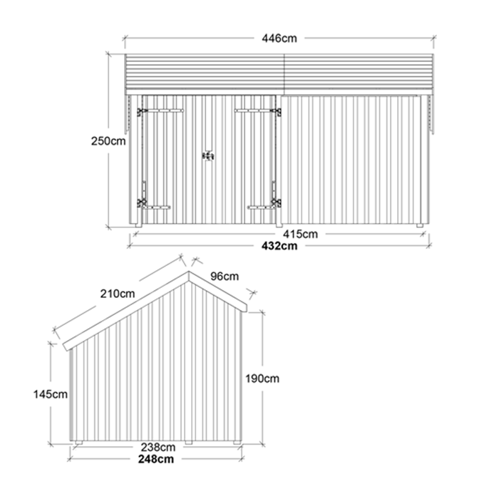 Yttermått mått: 432×248 cm (L×B).