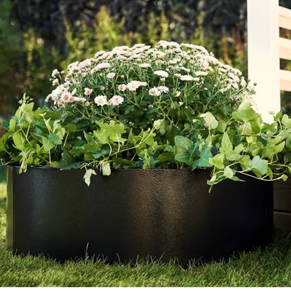 En rund pallkrage tillverkad i svart pulverlackerat stål som både är dekorativ och praktisk för att till exempel plantera kryddor eller andra växter i. Pallkragen går även alldeles utmärkt att använda som skydd till nyplanterade buskar och träd då det går att montera ringen runt din befintliga plantering. Pulverlackeringen gör så att pallkragen står bra emot korrosion.