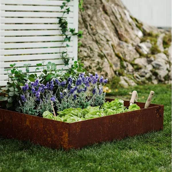 Pallkrage i obehandlat stål som rostar fint med tiden. Odlingskragen är både dekorativ och praktisk för att odla kryddor eller andra växter i. Kragen har måtten 120x80x20 cm och är 1 mm tjock. Då den är tillverkad av obehandlat stål får den med tiden en vacker rostfärgad patina.