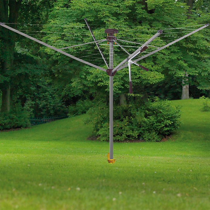 Utforska bekvämligheten med den roterande torkställningen, med sin användarvänliga enhandsanvändning kan du öppna och dra åt torkställningen utan fysisk ansträngning, tack vare ett smidigt "klick". De har designat denna torkställning för enkel hantering med det praktiska EasyLift-handtaget, vilket sparar både tid och ansträngning vid upphängning av tvätt.