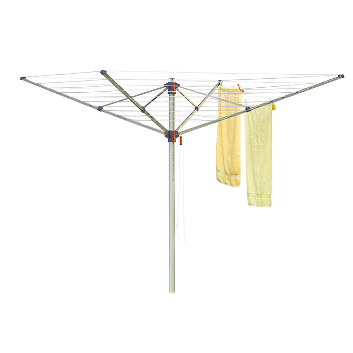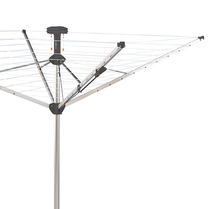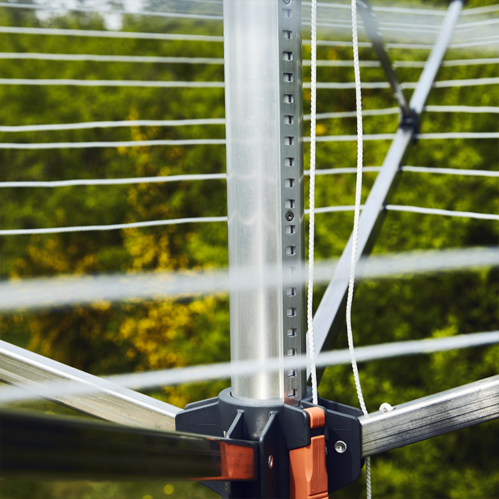 Paraplytorkställningen 600 erbjuder en imponerande längd av 52 meter klädstreck, vilket ger dig utmärkta möjligheter att effektivt torka sängkläder, lakan, handdukar och dukar. Med möjlighet till höjdjustering (140-175 cm) kan du anpassa arbetsytan för optimal komfort. Den praktiska funktionen för efterspänning eliminerar risken för slappa linor, vilket säkerställer en konsekvent och pålitlig torkning varje gång.