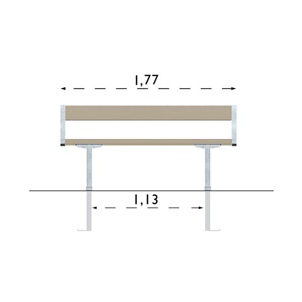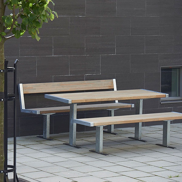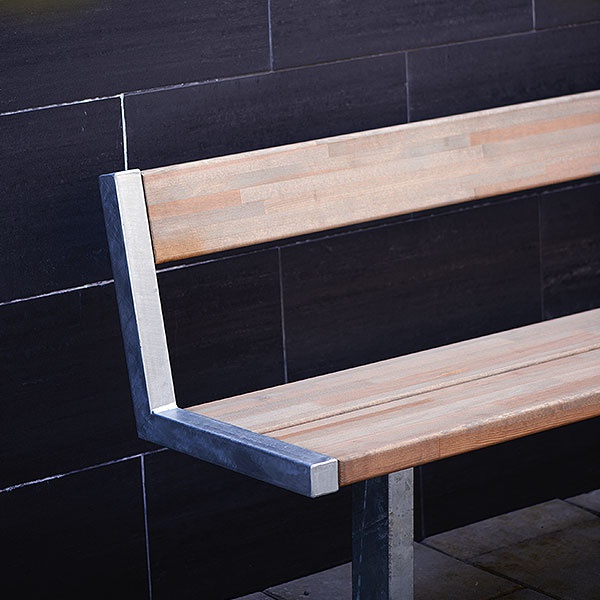 Material: Brädorna av stjärnsågad, kvistfri, fingerskarvad furu täckmålade svarta. Gavlar gjorda av varmgalvade fyrkants stålprofiler 50x50x3mm. Benen består av varmgalvaniserade stålplåtar och fyrkants stålprofiler.