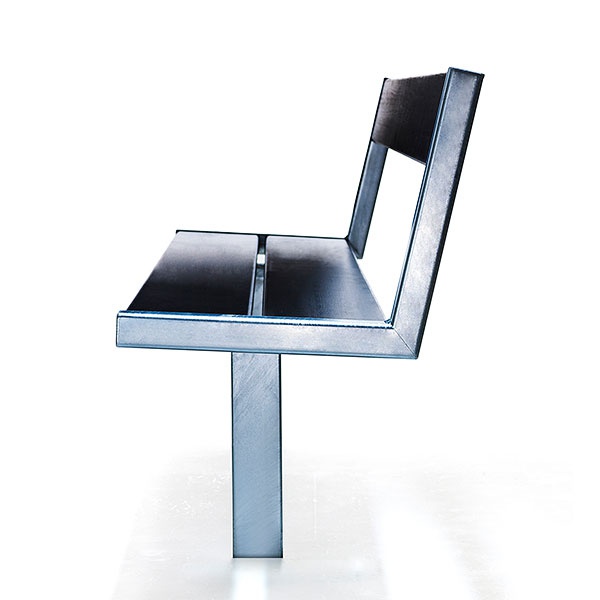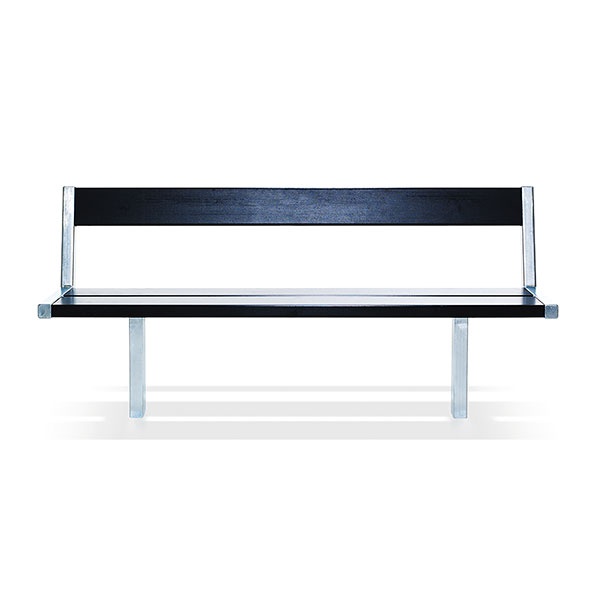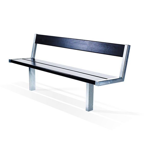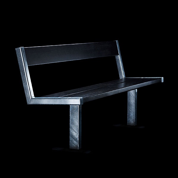 Material: Brädorna av stjärnsågad, kvistfri, fingerskarvad furu täckmålade svarta. Gavlar gjorda av varmgalvade fyrkants stålprofiler 50x50x3mm. Benen består av varmgalvaniserade stålplåtar och fyrkants stålprofiler.