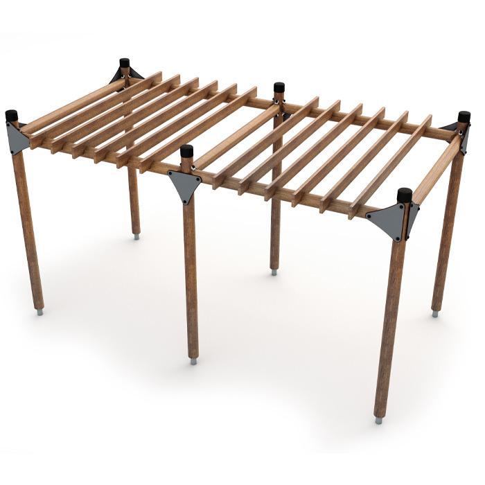 En avlång pergola som monteras genom nedgrävning, tillverkad i furu och anpassad för att klara tuffa utemiljöer perfekt för både parker och innergårdar. Genom att placera utemöbler inne i pergolan och utrusta taket på segeltak eller lyktor gör man denna pergola till en perfekt plats att umgås på under varma soliga dagar.