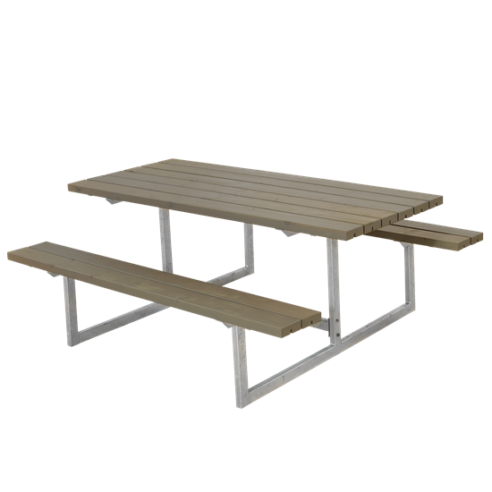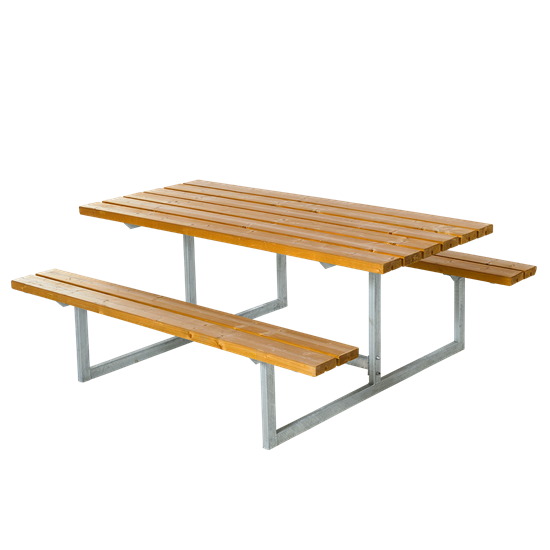 Basic picknickbord har ett underrede av varmgalvaniserat stål samt brädor som finns i flera olika träslag och grundmålade kulörer.