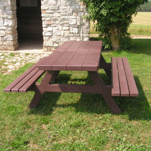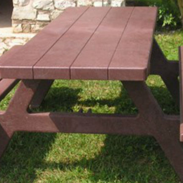 Picknickbord Fläder är ett helt underhållsfritt bord tillverkat i returplast. Alla de långa plastbrädorna är armerade med en ingjutet fyrkantsrör i stål, vilket ger en en väldigt bra hållfasthet.