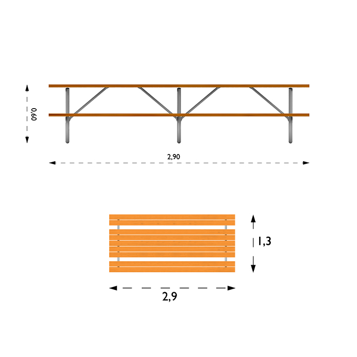 Material: Stommen är tillverkad av elförzinkad stål och bänkskivorna, samt bordsskivan är gjord av furu.