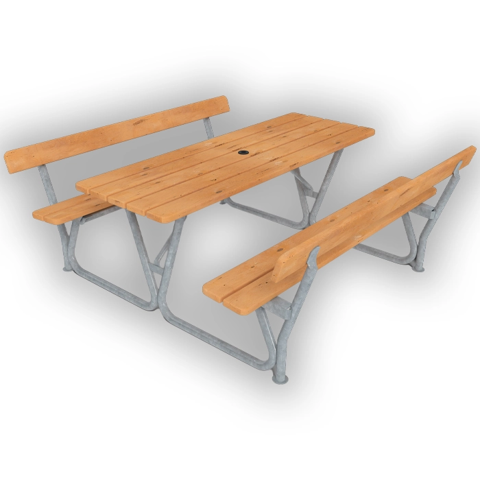 Detta bänkbord för vuxna är tillverkat i värmebehandlat furu och utrustat med bekvämt ryggstöd. Den klassiska modellen rymmer upp till 8 vuxna personer och är ett populärt val för arbetsplatser, kiosker, rastplatser och offentliga miljöer. Med en sitthöjd på 450 mm erbjuder bordet hög komfort och användarvänlighet.
