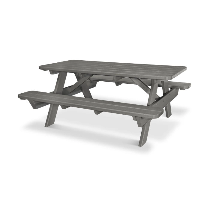 Picknickbord i återvunnet material med en vikt på hela 136 kilo vilket gör det svårt att flytta för obehöriga, finns i färgerna grått, svart & vitt. Tack vare materialet i Polywood är bordet underhållsfritt och behövs bara tvättas av med vatten vid behov.