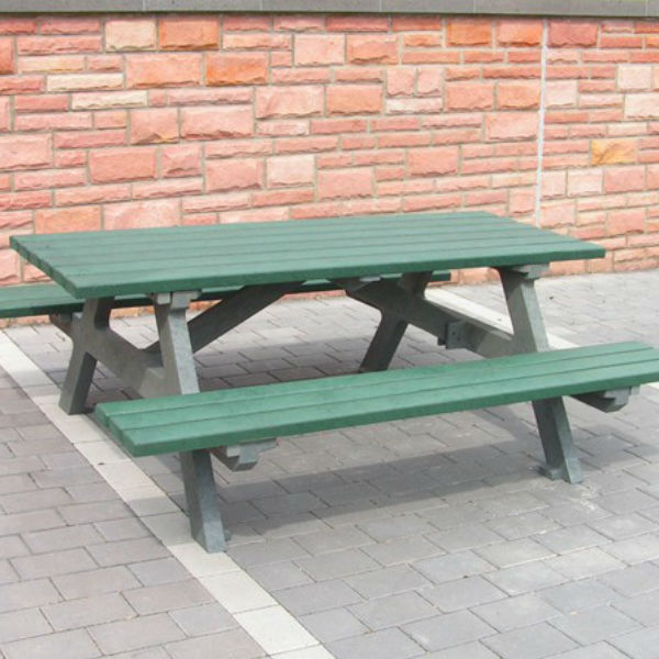 Picknickbord Rosenrot är ett helt underhållsfritt bord tillverkat i returplast. Alla de långa plastbrädorna är armerade med en ingjutet fyrkantsrör i stål, vilket ger en en väldigt bra hållfasthet.