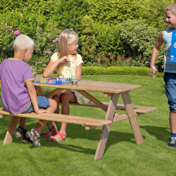 Detta picknickbord är framtaget för att passa barnen. Tillverkat i lärkträ.