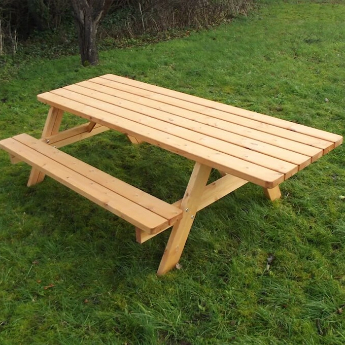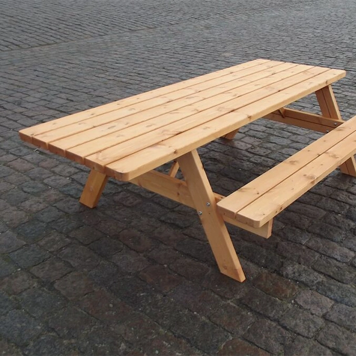 Detta bänkbord är perfekt för utomhusmiljöer som skolgårdar, parker och andra gemensamma ytor – året runt. Bordsskivan består av sex plankor, medan varje sittdel är uppbyggd av två plankor. Träet är brunlaserat och behandlat med ett vattenbaserat träskydd som effektivt motverkar väderpåverkan och förlänger bordets livslängd.