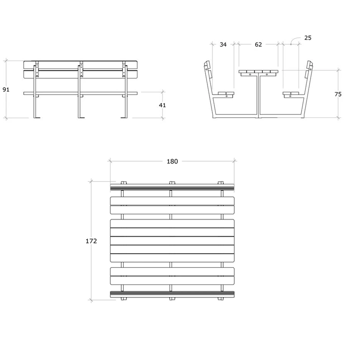 De genomfärgade plankorna, som har en naturlig träliknande struktur, är 100 % underhållsfria, splitterfria och vattenavvisande. De klarar alla väderförhållanden utan att kompromissa på kvalitet eller utseende. Med sittdjup på 26 cm och valmöjligheten mellan två eller tre sittplankor erbjuder Pierre Bänkbord både flexibilitet och komfort.