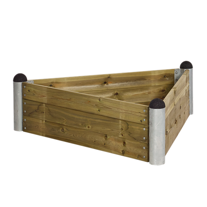 Denna odlingslåda i unik form är tillverkad av 28x120mm tryckimpregnerad furu/lärk/komposit som monteras ihop lätt med galvaniserade hörnstolpar. Den är simpel att montera ihop med de bultarna som medföljer. Denna odlingslåda lämpar sig till blommor, örter eller växter.