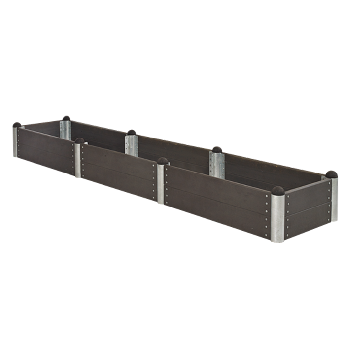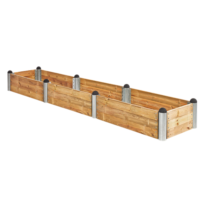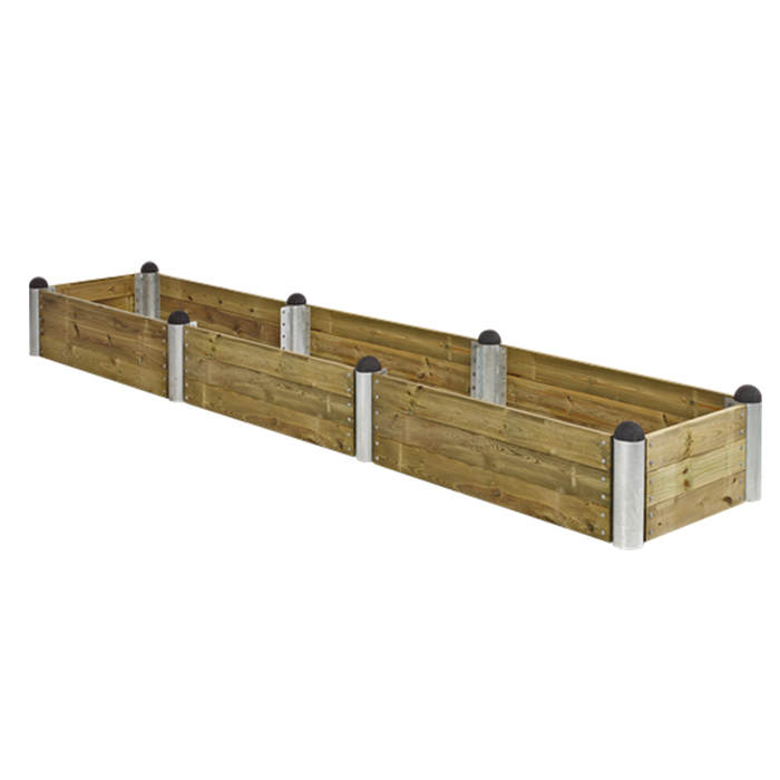 Denna planteringslåda i ett stort format är tillverkad av 28x120mm tryckimpregnerad furu/lärk/komposit som monteras ihop lätt med galvaniserade hörnstolpar. Den är simpel att montera ihop med de bultarna som medföljer. Denna odlingslåda lämpar sig till blommor, örter eller växter.