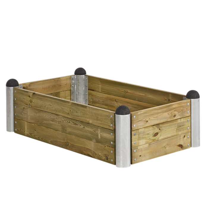 Denna odlingslåda av ett mindre format är tillverkad av 28x120mm tryckimpregnerad furu/lärk/komposit som monteras ihop lätt med galvaniserade hörnstolpar. Den är simpel att montera ihop med de bultarna som medföljer. Denna odlingslåda lämpar sig till blommor, örter eller växter.